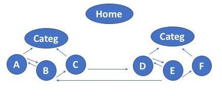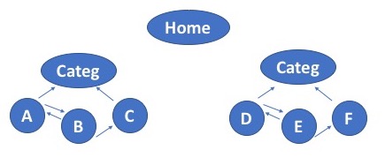 Aunque esta estructura es vertical, nada impide que dentro de una categoría haya un enlazado interno entre las distintas páginas. Lo que no habrá es un enlace de páginas de una categoría a páginas de otra.