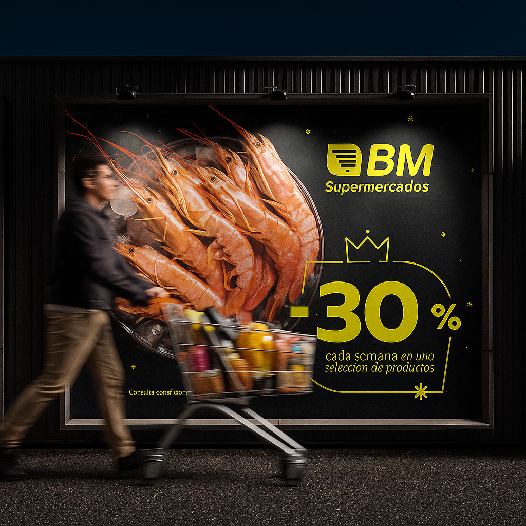 El briefing pedía desarrollar una campaña en la que hablemos de Navidad, con sus mensajes comerciales asociados (descuentos, producto en oferta…) y a la vez seguir insistiendo en el valor diferencial de BM Supermercados: los productos frescos.