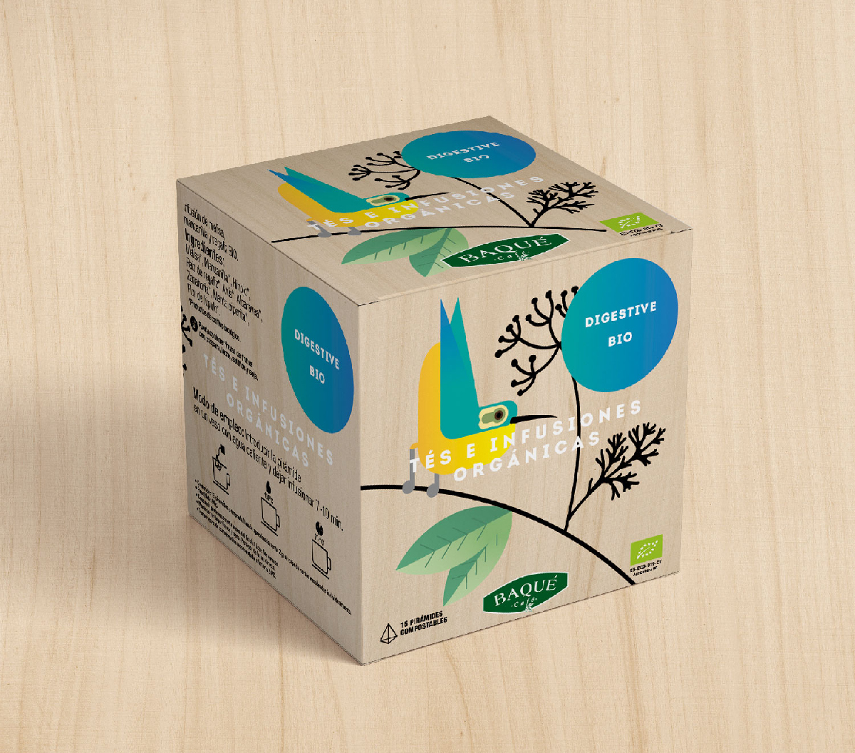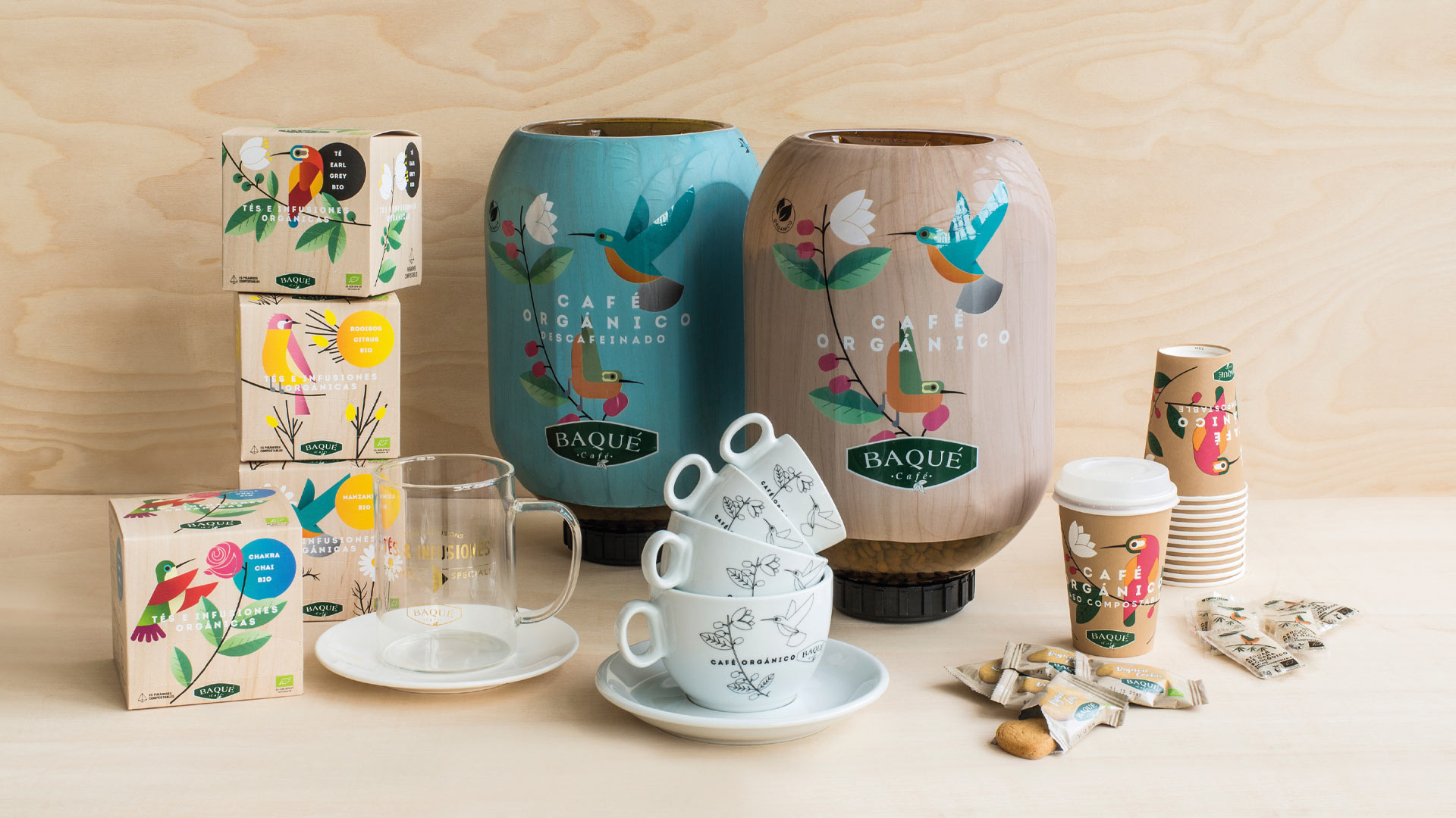 El encargo fue desarrollar una nueva imagen para la gama de productos orgánicos de Cafés Baqué. Tenía que ser reconocible, defender atributos propios de los productos orgánicos y poder desarrollarse en diferentes productos sin perder identidad.